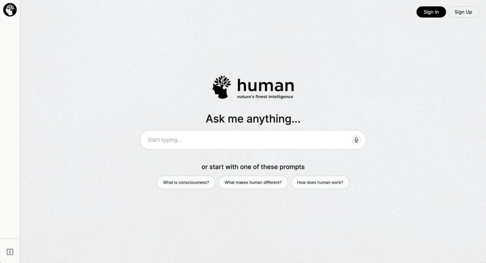 Human is a high-performance search platform built on advanced intelligence to provide direct, conversational answers to life’s most complex questions. Moving beyond traditional list-based search engines, Human allows users to interact with a deep knowledge base through natural dialogue. Whether exploring the biological mechanics of the body or the philosophical depths of consciousness, the platform delivers structured insights that are easy to read and understand. By focusing on the "why" and "how" behind every query, Human bridges the gap between raw data and true comprehension.