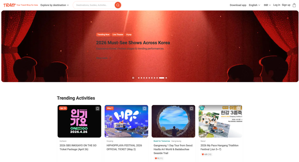 Trazy (Travel + Crazy) is the leading off-the-beaten-path travel booking platform specializing in Korea and Asia. Founded by a dynamic duo of travelers who realized that even as destinations like Korea surged in popularity, finding the "latest and trendiest" things to do remained a struggle for foreigners. Trazy was built to bridge that information gap, offering a curated marketplace of tours, concert tickets, beauty experiences, and exclusive passes. Today, it stands as the #1 platform for travelers seeking both quality and quantity in their Asian adventures.